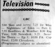 | 01:10, 21 September 2012 | Adel4K78.JPG (file) | 49 KB | Jon Preddle | Adelaide TV Week, 11 Oct 1978 | 1 | |