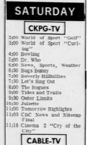 | 23:40, 2 April 2015 | CFTKTV65.jpg (file) | 250 KB | Jon Preddle | Generic TV listing for CFTV, Prince Rupert Daily News, 1965 | 1 | |