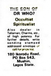| 21:33, 3 May 2015 | SonofDrWhoad.jpg (file) | 39 KB | Jon Preddle | Son of Dr Who ad from Drum 1979 | 1 | |