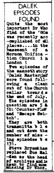 | 01:13, 2 May 2015 | 19650625DW.jpg (file) | 492 KB | Jon Preddle | Final 5 episodes in Ontario on weekdays: 28 June to 2 July, 1965; Peterborough Examiner, 25 June 1965 | 1 | |