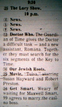 - 7 October 1978: The standard package of 23 Tom Baker stories begins screening, in a 9.00pm timeslot, with two episodes airing back to back. Stories were aired out of order, with Robot followed by Terror of the Zygons.
