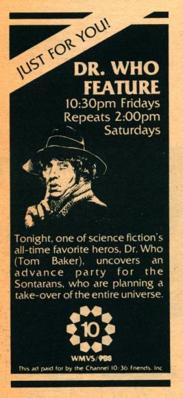 • 23 September 1978: Began airing the Tom Baker stories, Saturdays at 4:30.