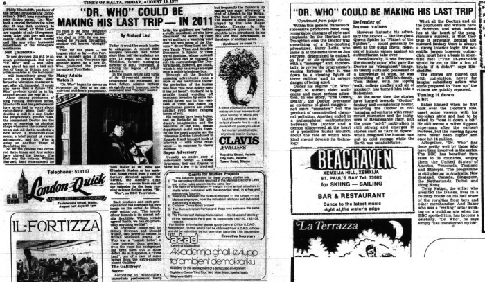 Times of Malta – Doctor Who to end in 2011? – 16 August 1977