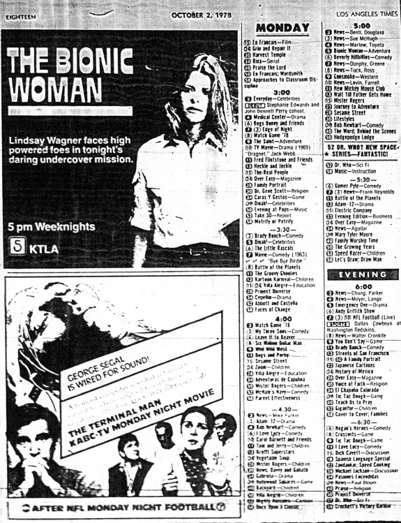 - 2 October 1978: Aired Doctor Who weeknights at 5pm and 6:30pm, often out of sequence.