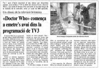 Televisio de Catalunya (TVC) was launched on 11 September 1983 as Catalonia's public broadcasting service. The region of Catalonia / Cataluna is in the north east Spain at the border with France. Barcelona is its largest city. It's first and main channel was TV3; it was on that station that Doctor Who screened in 1988 to 1989.