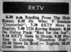 [[File:Nigeria RKTV.JPG|thumb|right|250px|RKTV; Generic listing 1965, Nigerian Daily Times]]