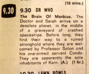 [[File:ADEMorbius78.JPG|thumb|right|Brain of Morbius compilation, in Adelaide only, 11 October 1978]]
