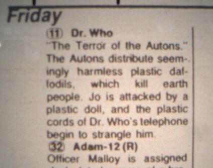 | 22:50, 11 March 2017 | 423 × 334 (26 KB) | Jon Preddle (talk | contribs) | US listing for Terror of the Autons (prob Chicago) |