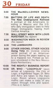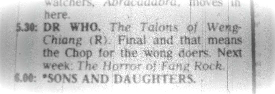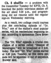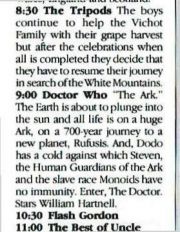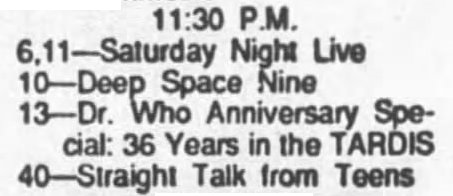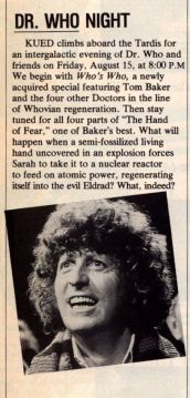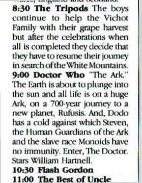 | 12:12, 26 March 2022 | 1983-11 TV19 Guide.jpg (file) | 738 KB | The Five Doctors "party" | 1 | |