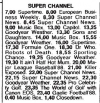 Satellite television station Super Channel was launched on 30 January 1987, and broadcast across Europe.