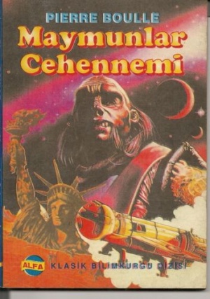 Turkish edition of "Planet of the Apes" novel, using part of Chris Achilleos' artwork for the Target novelisation of Frontier in Space