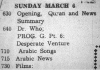Aden was the 7th country to screen Doctor Who (see Selling Doctor Who). It was the first in the Middle East.