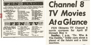 As covered above, the second Peter Cushing Dalek movie, "Daleks Invasion Earth 2150 AD" aired on the FEN stations in January, March and April 1975, and again in July and August 1983.