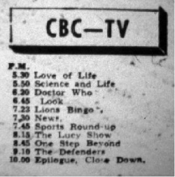 Barbados was the last of the four Caribbean nations that was serviced by the programme distributor Television International Enterprises Limited to screen the first eleven William Hartnell stories. These were either sent back to TIE Ltd or the BBC, or destroyed.