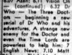 Most of the Pertwee and the first few Tom Baker listings contained synopses of the episodes. Baker stories were then identified by a title only until August 1980. After that date there were no longer any episode titles given.