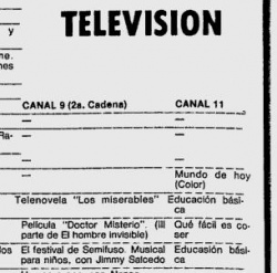 - Espectador: Doctor Misterio – D animados for the full hour; the addition of the "animation" description that had previously been applied to Cobra is presumably an editorial or printing error, rather than an indication that a cartoon aired after Dr Misterio