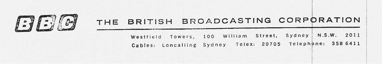 Letterhead for BBC Enterprises in Sydney (1974)