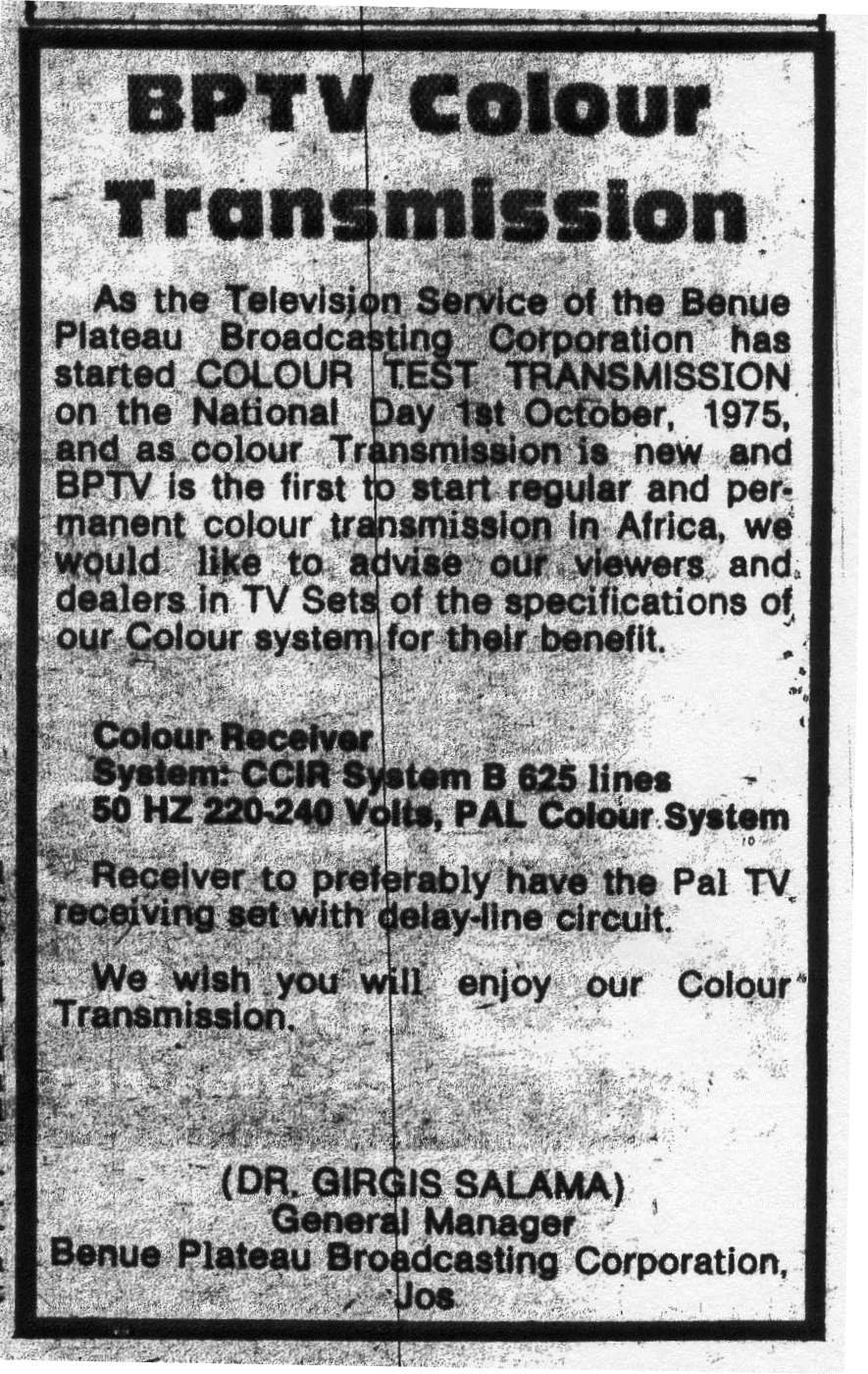 Nigeria Standard, 1975 ad for colour TV