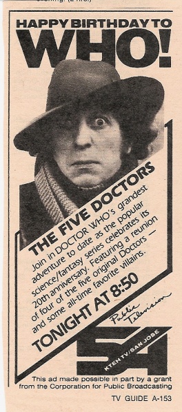 TV Guide, clipping for Five Doctors (Nov 1983) for KTEH San Jose