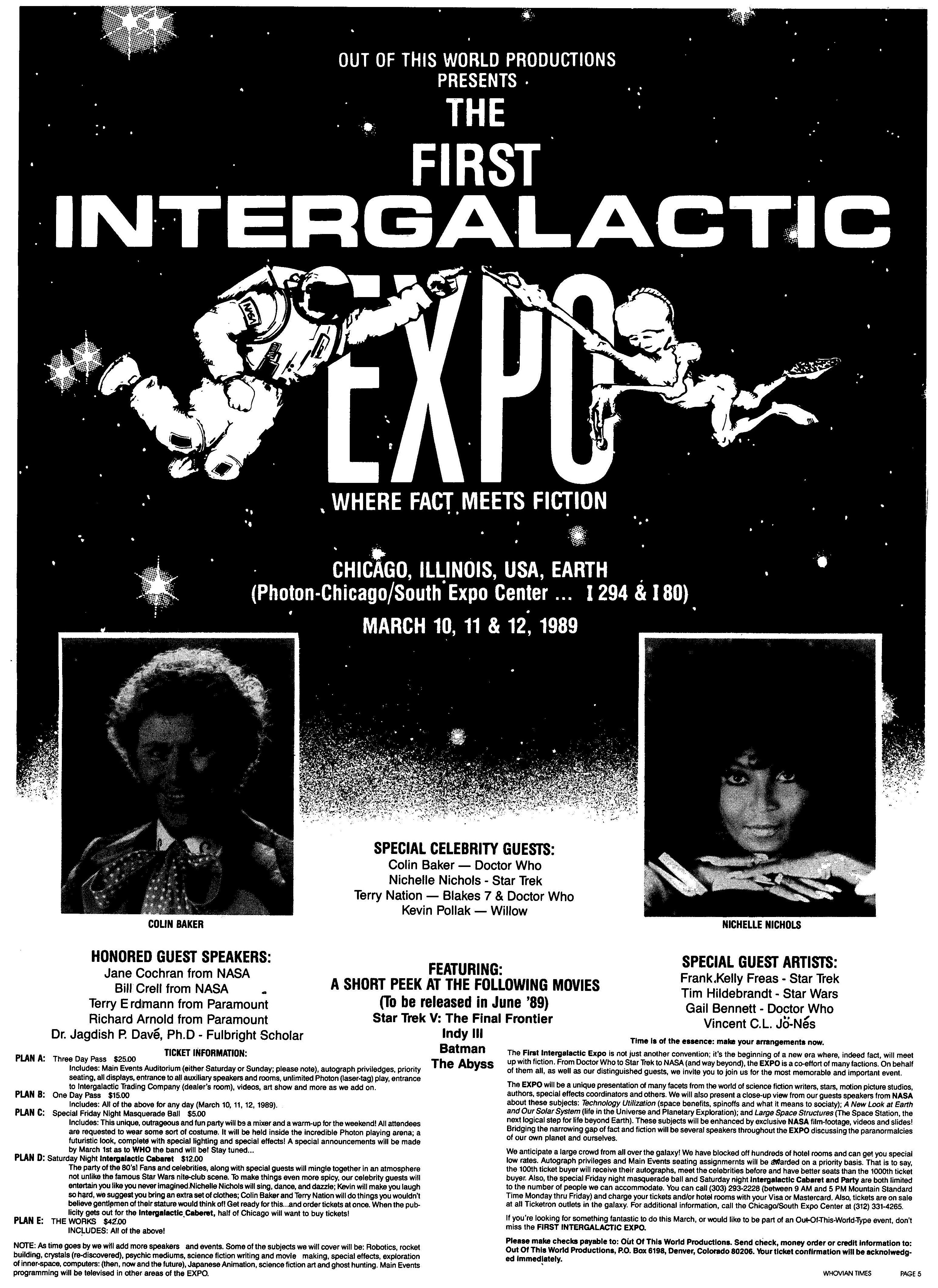 The First Intergalactic Expo ad, Whovian Times, v. 16 (1989)
