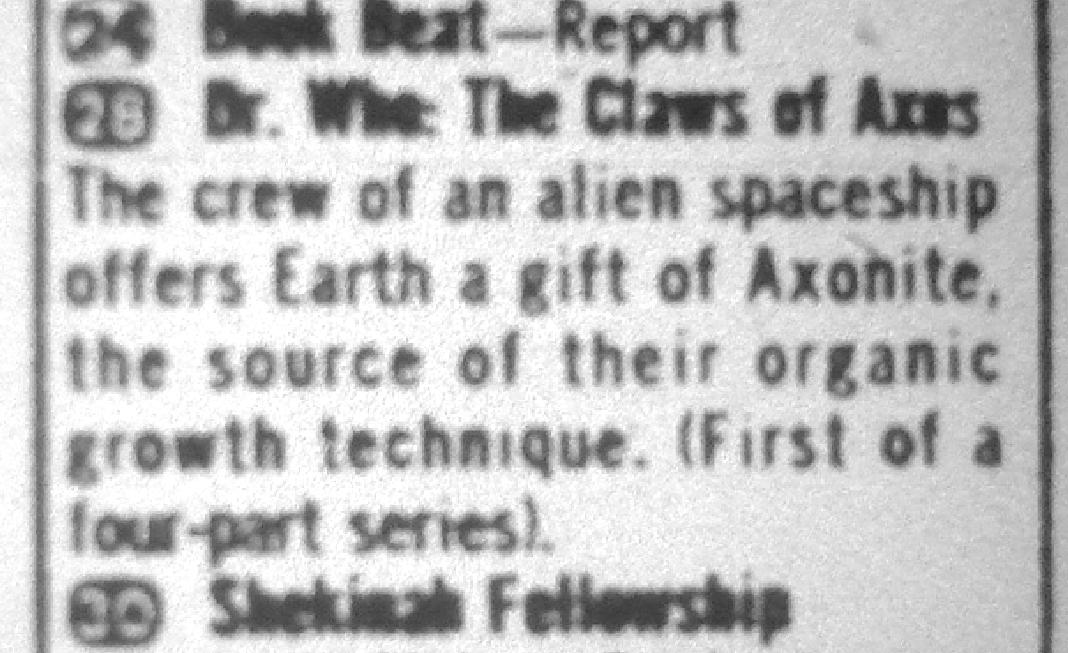 | current | 22:52, 21 January 2011 | 1,068 × 653 (109 KB) | Jon Preddle (talk | contribs) | Los Angeles Times, billing for The Claws of Axos, 17 Feb 76 |