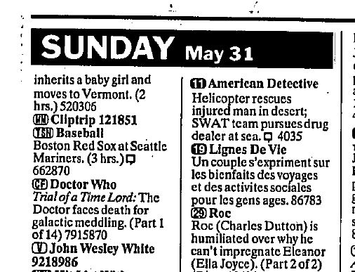 Trial of a Time Lord 1 on LCF, Toronto Times 31 May 1992