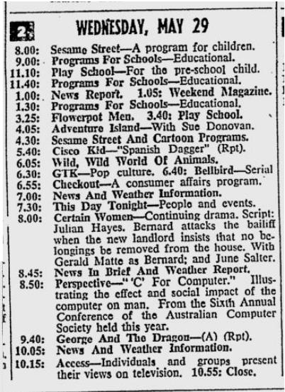 TV Listing from Sydney Morning Herald, 29 May 1974