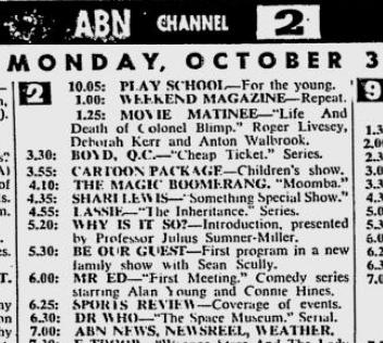 The Space Museum ep 1, Sydney Morning Herald, 3 Oct 1966