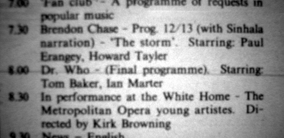 TV listings for Sri Lanka, from Daily News/Mirror, 1984.