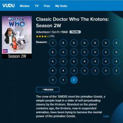 | current | 23:15, 3 October 2019 | 695 × 692 (84 KB) | Jon Preddle (talk | contribs) | Vudu menu for The Krotons |