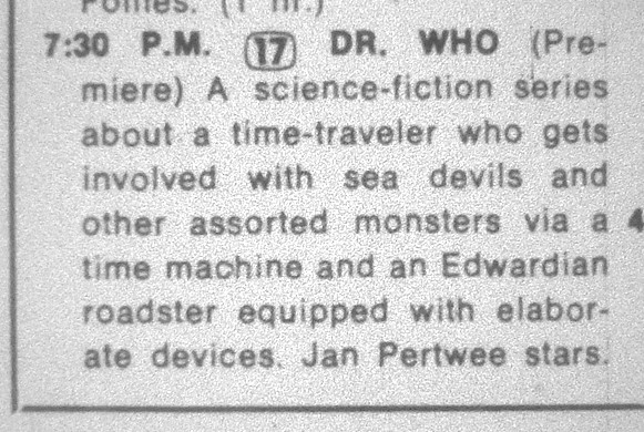 | current | 21:21, 21 January 2011 | 581 × 390 (99 KB) | Jon Preddle (talk | contribs) | Philadelphia Inquirer, 28 Aug 1972, TV Highlights. |