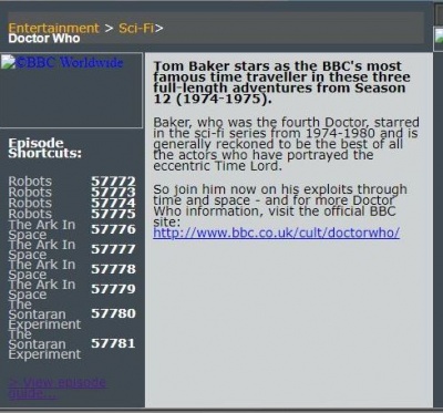 The 'package' of the first three Tom Baker stories was available to access on the Sci-Fi Choice option, from Thursday, 4 April 2002 until at least 11 June 2003. (The episodes were no longer available by 18 June.)