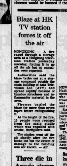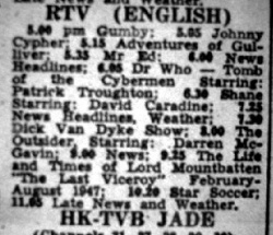TV Listings have been obtained mainly from the South China Morning Post and the Hong Kong Standard for the 1960s and 1970s listings, and Hong Kong TV & Entertainment Times for the 1980s.