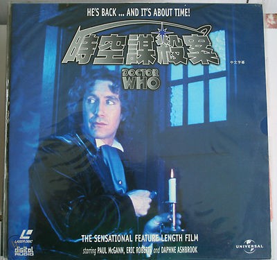 The Paul McGann TV Movie was released on laser-disc in late 1996 (by MCA/Universal/CIC Video (Hong Kong), albeit manufactured in Japan in the NTSC format) under the title "時空謀殺案" - which translates as "Murder in Time and Space". It was in English with "Chinese" subtitles – most likely Cantonese over Mandarin, since the former is the more prevalent language spoken in Hong Kong. As such, it is believed that this item was available in Hong Kong only rather than also mainland China or Taiwan, where Mandarin is the more predominant language.