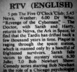 It was during this run – on 1 June 1973 - that RTV's cable service was replaced by its free-to-air terrestrial broadcasts. This switch would have occurred between Day of the Daleks and The Curse of Peladon.