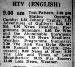 It is worth noting that although RTV could broadcast colour when it commenced in 1957, it would have been limited for choice when it came to colour material. But when the first four seasons of Jon Pertwee's Doctor Who episodes were provided by BBC Sydney, they were in black and white. Presumably Hong Kong could not be supplied with colour PAL tapes for the early Pertwees because they were not compatible with their 405-line system. (RTV commenced its PAL 625-line system in 1975.)