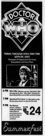 - 12 December 1987: Jon Pertwee visits Baton Rouge with the Doctor Who USA Tour promotional tour; WLPB used his visit to promote its annual fall membership winterfest.