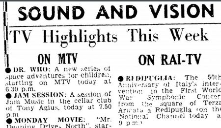 TV listings have been obtained from the newspapers The Times of Malta and Daily News.