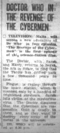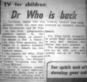 The Stanmark Productions Ltd advertisement from 1966, identifies Malta as one of sixteen countries screening Doctor Who by January 1966.
