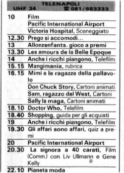 Some of the local stations in Italy carried the Telemontecarlo feed, and dual branded the channel with both station names, per this 1984 sample from Telenapoli (Channel 34) in Naples: