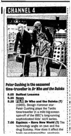 The Observer's 6 Nov 1994 billing for 'Dr Who and the Daleks' on Channel 4 uses a photo from 'Daleks' Invasion'!