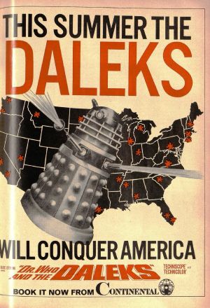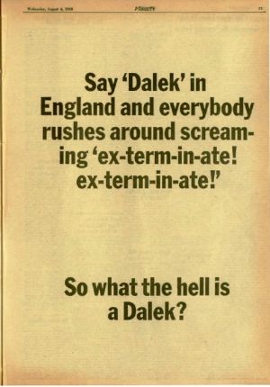 Announcing the arrival of the Daleks in the USA; Variety magazine, 4 August 1965, page 1