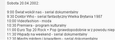 An unofficial site by fans of Polonia 1 has quite an extensive online "archive" of material, including lists and examples of daily schedules of the various programmes the station aired over the years (see POLONIA 1, as well as a general Polish TV listings "archive" at POLISH TV LISTINGS), but despite our searching in both sites for references to Doctor Who, Doktor Who or Doktor Kto, none could be found. Of course, not being able to read Polish doesn't exactly help!