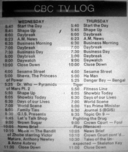 The few issues of Voice of St Lucia that were available had TV listings for the Barbados channel CBC; only two episodes were identified by title: Wednesday, 20 May 1987 for "Terror of the Zygons Part 1", and Wednesday, 24 June 1987 with "Pyramids of Mars Pt 2", both of which were from the repeat screenings.