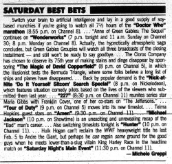 | Related articles | List of conventions | List of fan clubs | References to the USA in Doctor Who | Doctor Who USA Tour | USA Tour stops | Documentaries and specials | TV Guide | Saturday, March 12, 1988 | First airings by episode |United States by the numbers | Chicago chronology | Time-Life Television |