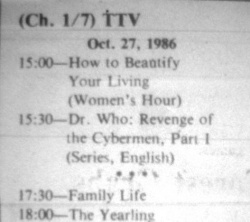 The series started on Monday, 18 August 1986, at 3.30pm. The listings merely state the programme was in "(English)". It is not known what the first 4-part serial was. The 8 September episode was pre-empted by a Variety Show.