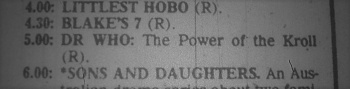 This story aired in the following known countries. They are listed in chronological order according to known airdate. If no month is noted, the actual airdate is not confirmed, and is a close approximate. (Refer also to Selling Doctor Who for expanded airdates.)