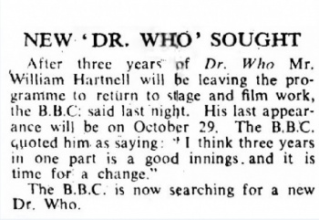 - It is thought that the BBC withdrew The Tenth Planet from sale at that time as well, as it might have felt that it couldn't offer Hartnell's final story without Troughton's first to follow-on, or it had decided that it was preferable to sell the new batch of Troughton stories (The Highlanders to The Faceless Ones) as a discrete package of 22 episodes featuring the same lead actor, than to force foreign stations to have to purchase one single Hartnell story as well. This is particularly true when we see that the three countries after Australia to buy The Highlanders hadn't screened any Hartnell stories for several years! (Uganda and Hong Kong had both stopped screening Doctor Who with The Rescue in 1967, while The Time Meddler was the last story to be seen in Singapore in 1966!).