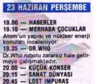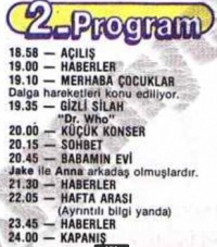 If any episodes did air in the late 1970s (per the Observer and DWM), we have not been able to find any listings. Turkish newspapers have been checked for 1977 to 1981, but no direct billings for Doctor Who (or its Turkish equivalents) could be found.