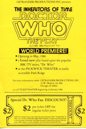 • May 1986: Although advertised as opening this month, the stage-play The Inheritors of Time is cancelled due to various copyright issues.